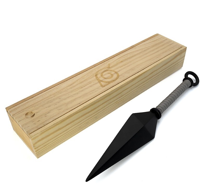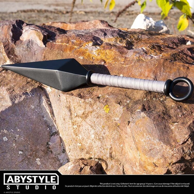 This stylish metal kunai replica weighs 438 g and measures 29 cm. Recommended for fans 14 years and older.