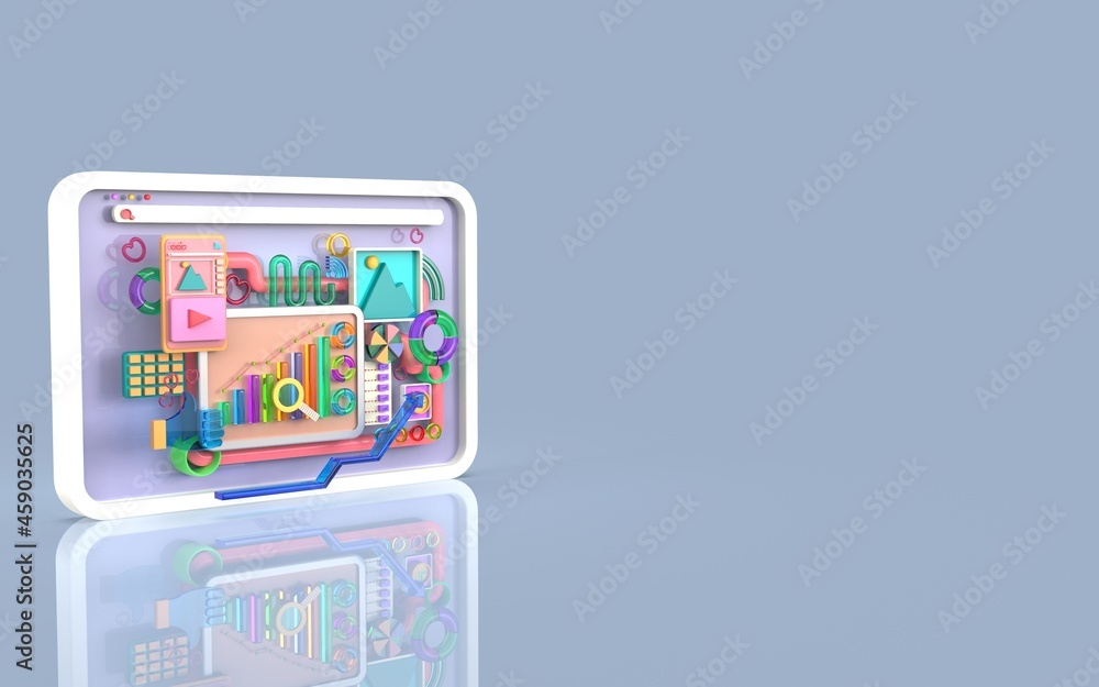 Photography Mobile application software and web development with 3d shapes bar chart infogra