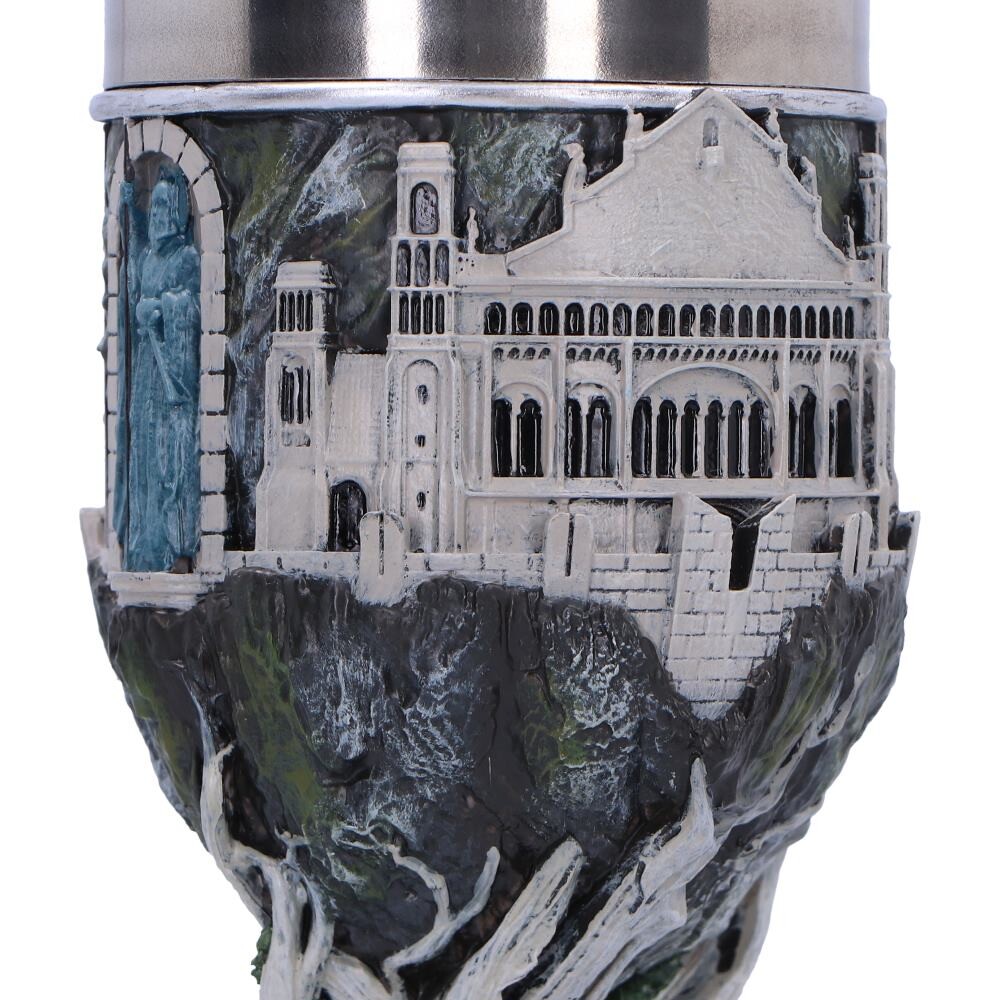 Introducing this exquisite Officially Licensed Lord of the Rings Gondor™ Goblet – a majestic blend of craftsmanship and fantasy that brings the enchanting realm of Middle-earth™ to your tabletop. Crafted with unparalleled attention to detail, this goblet is a tribute to the proud city of Gondor and honours the legendary masterpiece of J.R.R. Tolkien. Featuring intricate engravings that showcase the iconic symbols of Gondor – the White Tree of Gondor™, the symbol of the realm's royal lineage, and the stunning architecture of the city itself. Cast in the finest resin before being expertly hand-painted, whether you are a devoted fan of The Lord of the Rings, or a collector of exquisite fantasy-themed artifacts, the Gondor™ Goblet is a true treasure.
