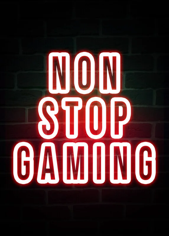 Non Stop Gaming,Gamer Neon Quote For Setup.
