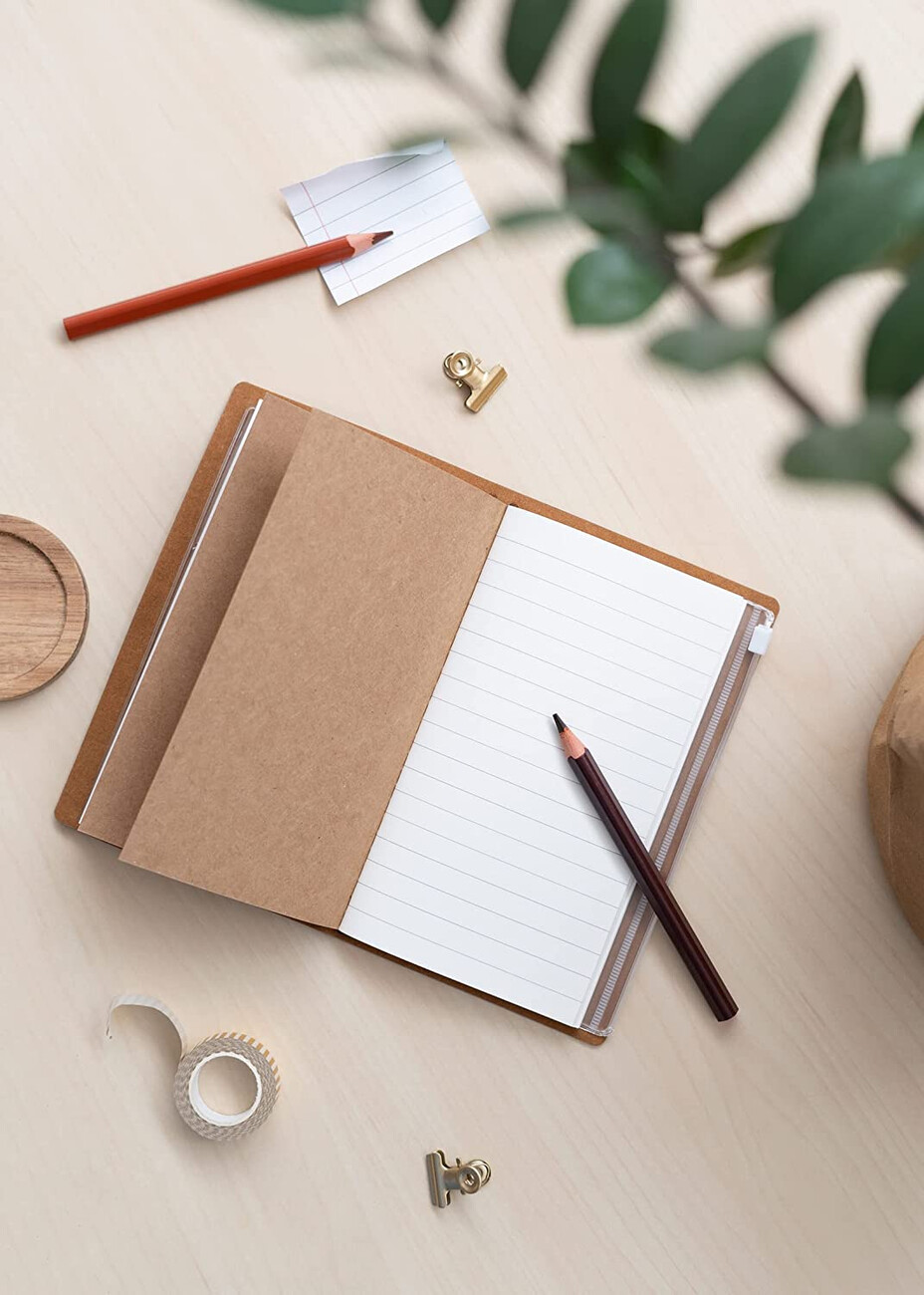 Luxurious leather notebook. Ideal travelling partner. Made of artificial leather. The notebook consists of: 72 lined pages, 72 bullet pages, 1 pocket bag, 3x card holders