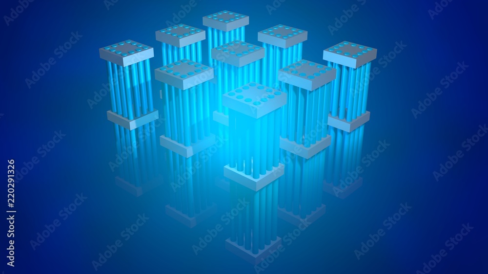 Photography Nuclear fuel rods. 3d Render. Wide view