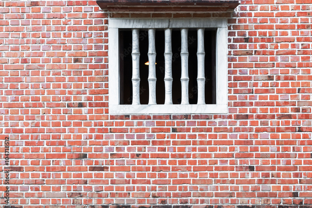 Photography Old red brick wall with Window.