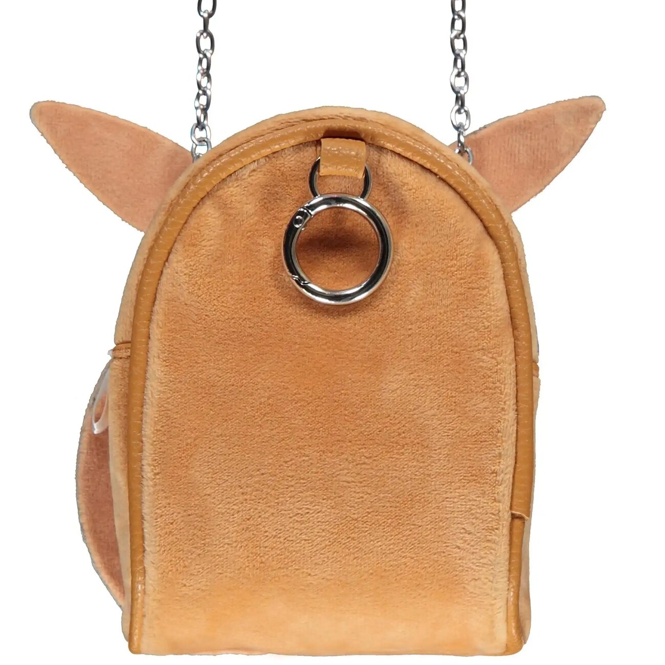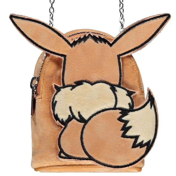 Compact, cute Eevee micro bag keeps cards, keys and other essentials close. Wear it crossbody with the gold chain, or tuck the chain away and use it as a stylish charm. A discreet back carabiner clips easily to a backpack or tote. Officially licensed product.