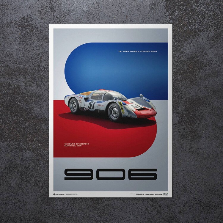 Down the finishing order of the 1970 12-hours of Sebring was Porsche 906 driven by Dr Merv Rosen and Stephen Behr. The Porsche 906 endurance racer had an interesting history, as a lighter and faster evolution of the 904. It was lighter because of its fibreglass bodywork and was generally powered by a 2 litre flat-6 engine, although it made the occasional outing with a flat-8 under bonnet.