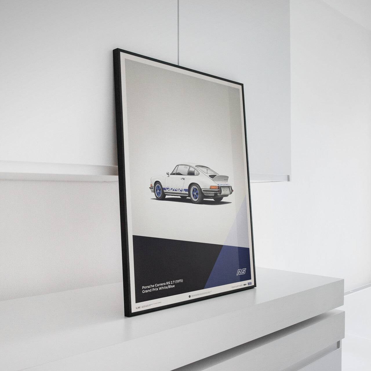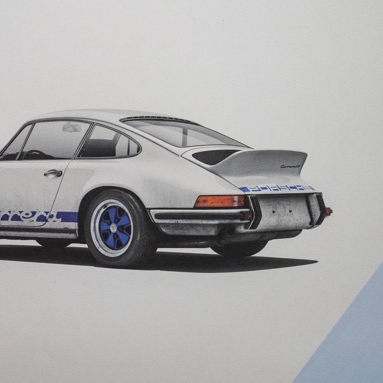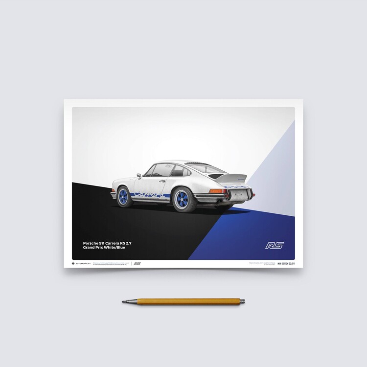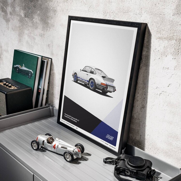 The white Porsche 911 Carrera RS poster features a car that many consider to be the most classic 911 ever built. Designed to meet motorsport requirements, the RS – meaning Rennsport, the German word for race sport – featured a larger engine than the standard 911 S, stiffened suspension, and an iconic ‘ducktail’ rear spoiler. In total, 1,580 were made between 1973 and 1974, all of which qualified for the FIA Group 4 class. Our posters have been created to complement the wide selection of iconic and eye-catching colors the cars were painted in – printed on perfectly weighted paper, as part of a production run of just 911 prints. For all of our posters we use high quality off-set printing, premium paper, and vibrant color reproduction that stands the test of time – just like the cars themselves. Each one is limited and labeled with a special hologram sticker to denote its authenticity.