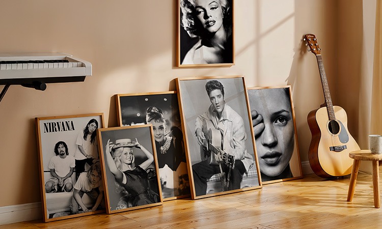 Our posters come in standard sizes and we offer precise fitting frames in many colours.