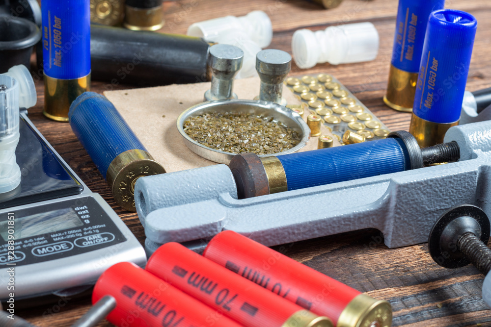Photography reloading process shotgun shells with special reload equipment