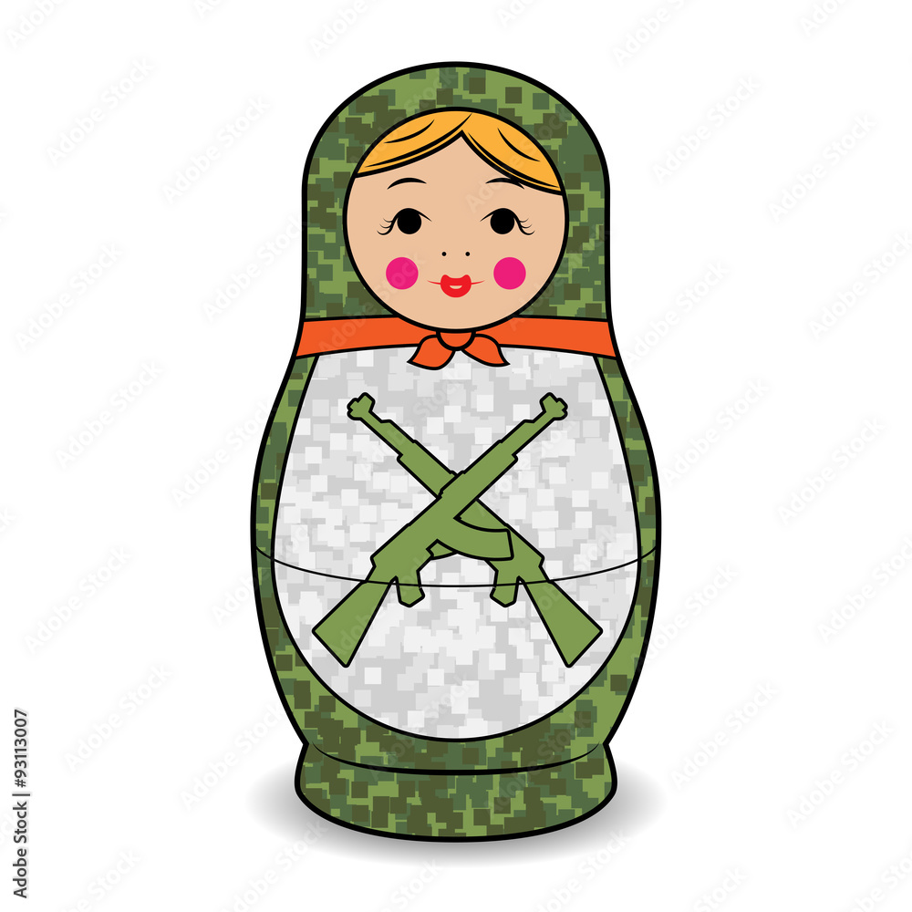 Photography Russian nesting doll Matryosha with automatic weapon