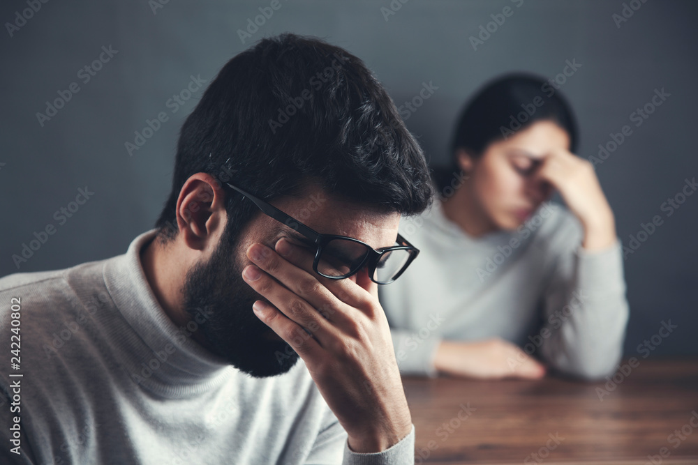 Photography sad couple in table