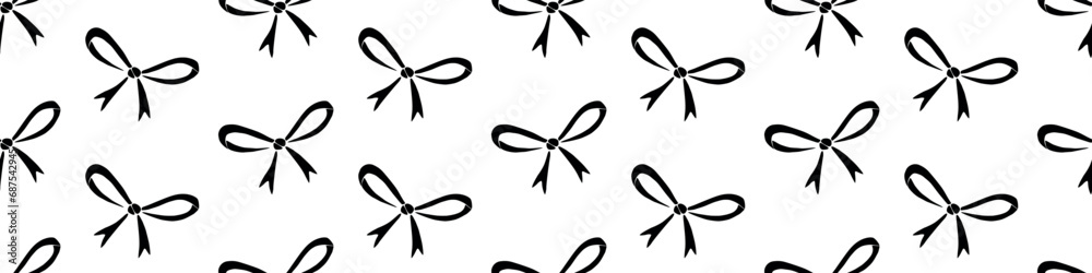 Photography Seamless pattern with small black flat bows, ribbons