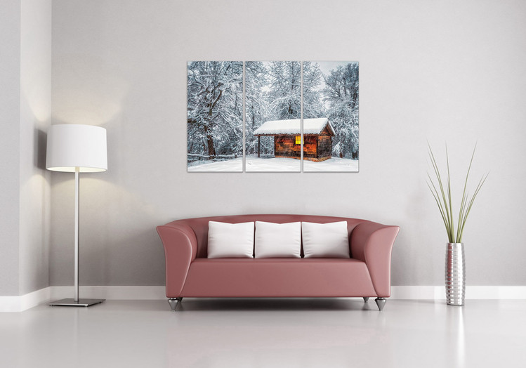 Snowy cottage Mounted Art Print