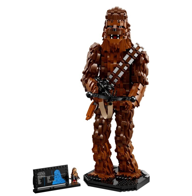Celebrate the 40th anniversary of Star Wars: Return of the Jedi and pay tribute to this legendary Wookie with the LEGO® Star Wars™ Chewbacca™ (75371) display set. Unleash your creative power and build this furry character with his bandalier and crossbow from LEGO bricks. The impressive buildable figure measures over 46cm tall and includes a display stand. There's also a character info tag and a LEGO® Chewbacca minifigure with a crossbow. An amazing building experience Instructions to guide you through each step of building this fascinating model can be found in the box or in the LEGO Builder app. Then you can proudly display your creation. A Galaxy of Possibilities It began one day long ago, in a galaxy far, far away. Now the story continues in your home with LEGO Star Wars collectible sets for adults. Explore this range to discover great Christmas or birthday gifts for Star Wars fans.