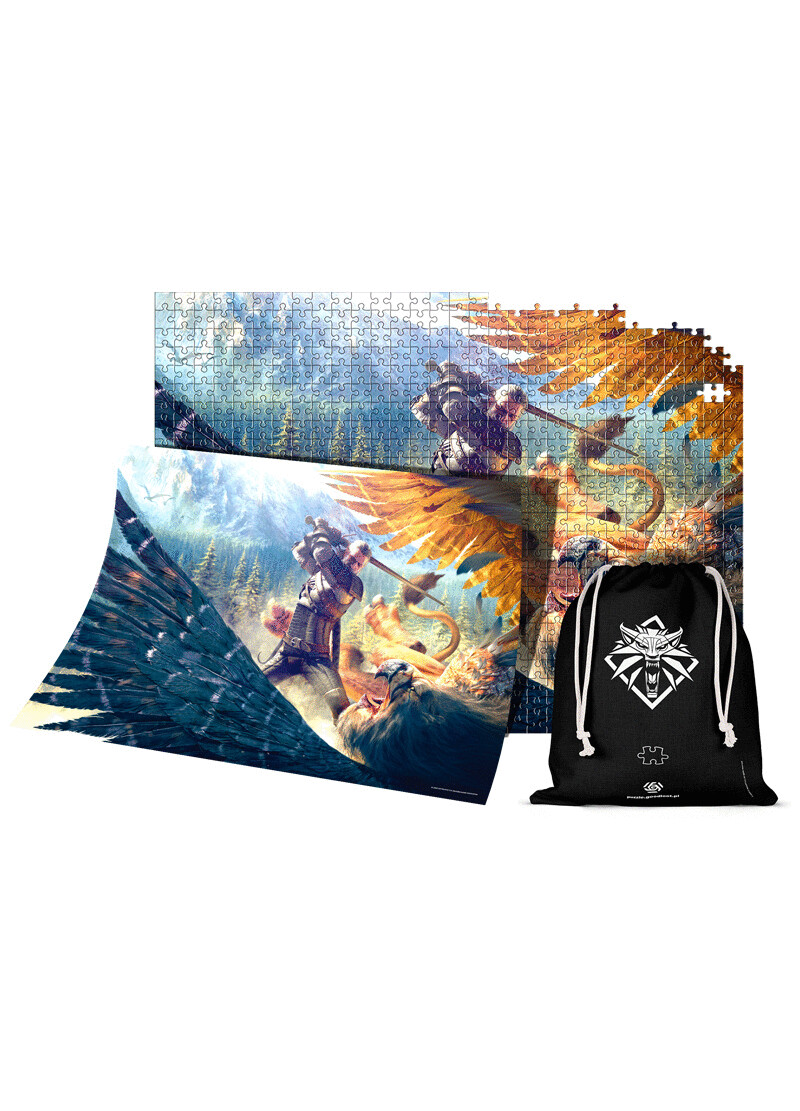 The package contains 1000 pieces of puzzles, a folded poster with a game motif and a cotton bag for puzzles.