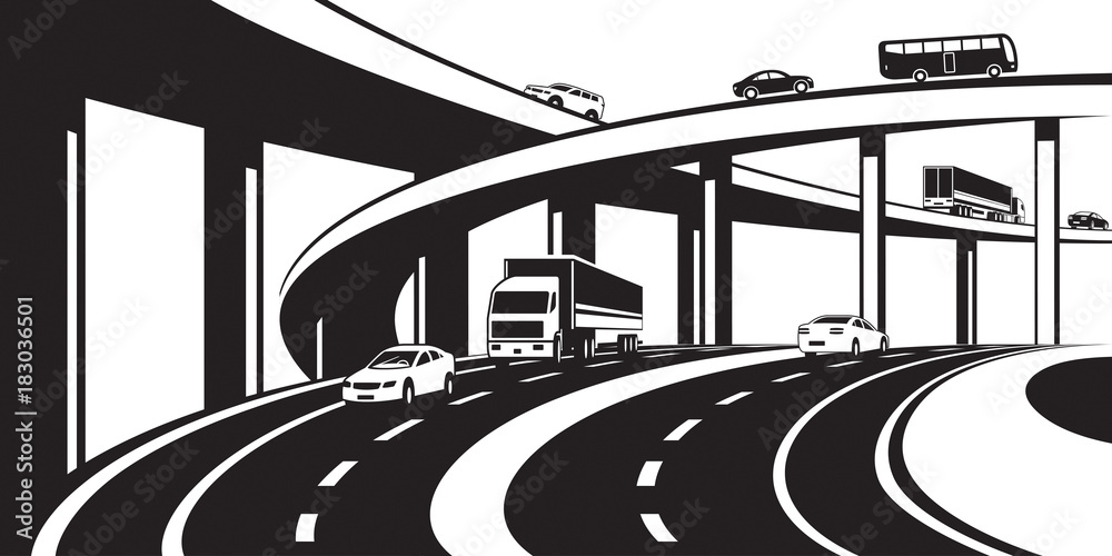Photography Three level interchange on highway - vector illustration