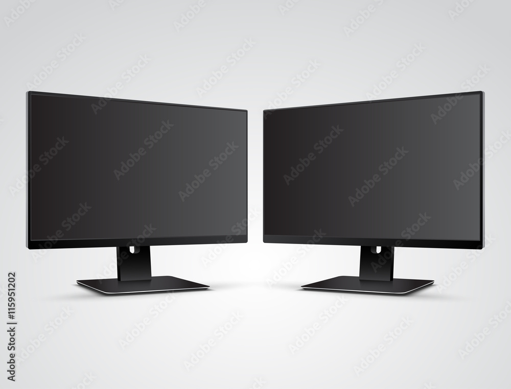 Photography Two Computer Monitors with blank screen Mockup Isolated