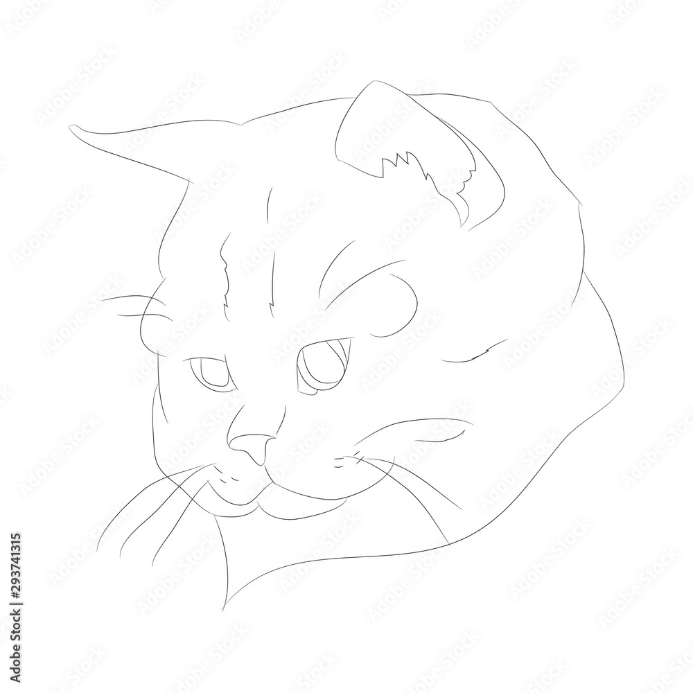 Photography vector illustration cat portrait, lines, vector