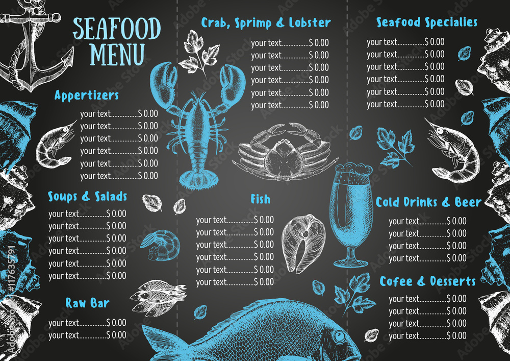Photography Vintage seafood menu design.Vector illustration document template