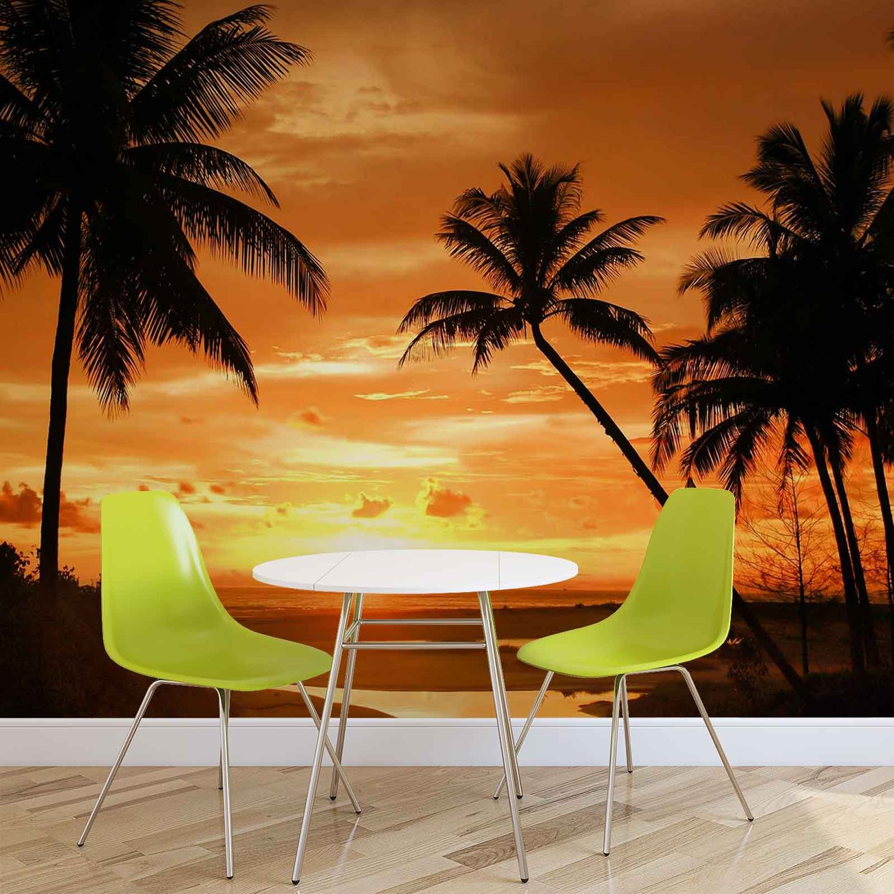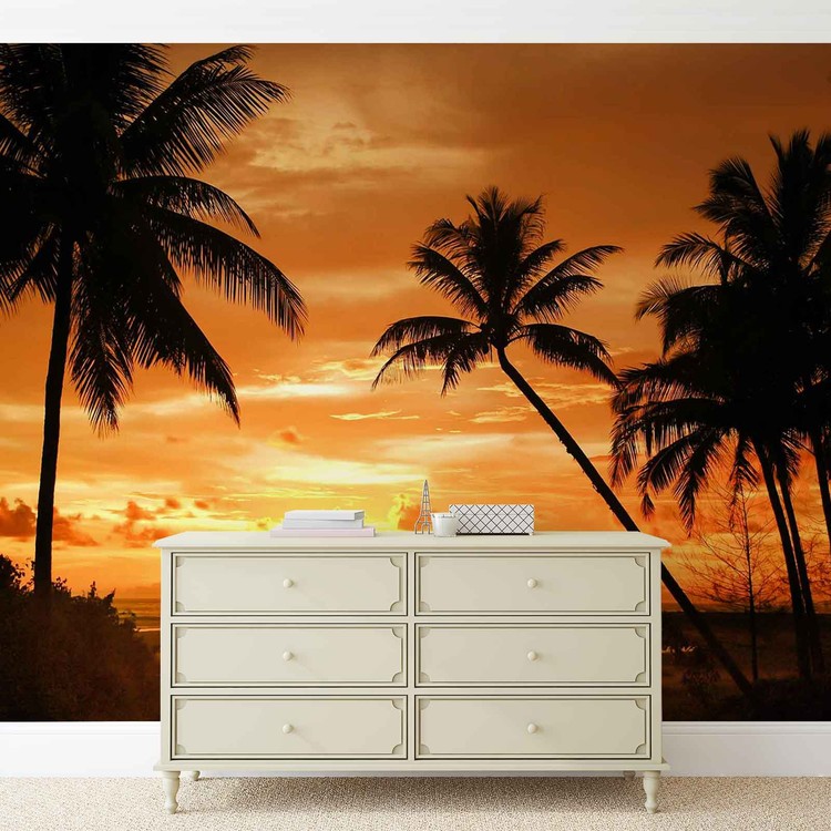 Beach Tropical Sunset Palms Wallpaper Mural