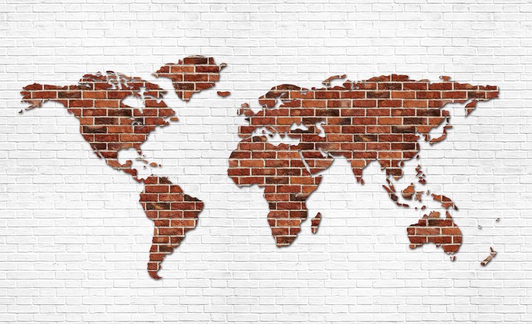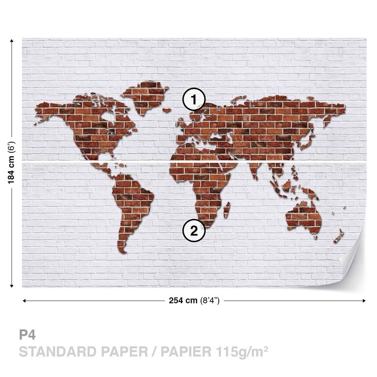 Brick Wall World Map Wallpaper Mural