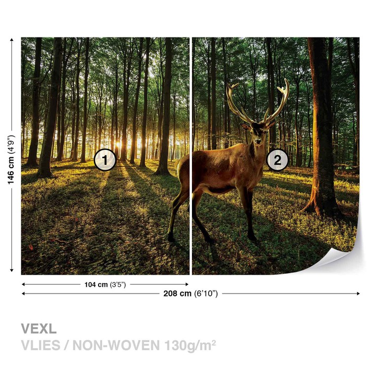 Deer Forest Trees Nature Wallpaper Mural