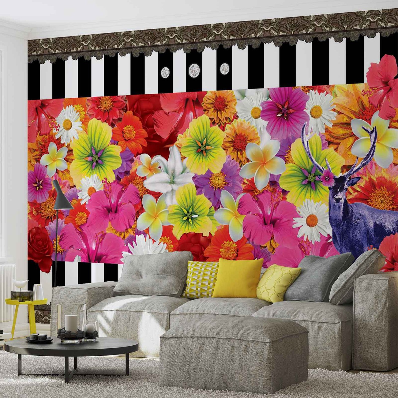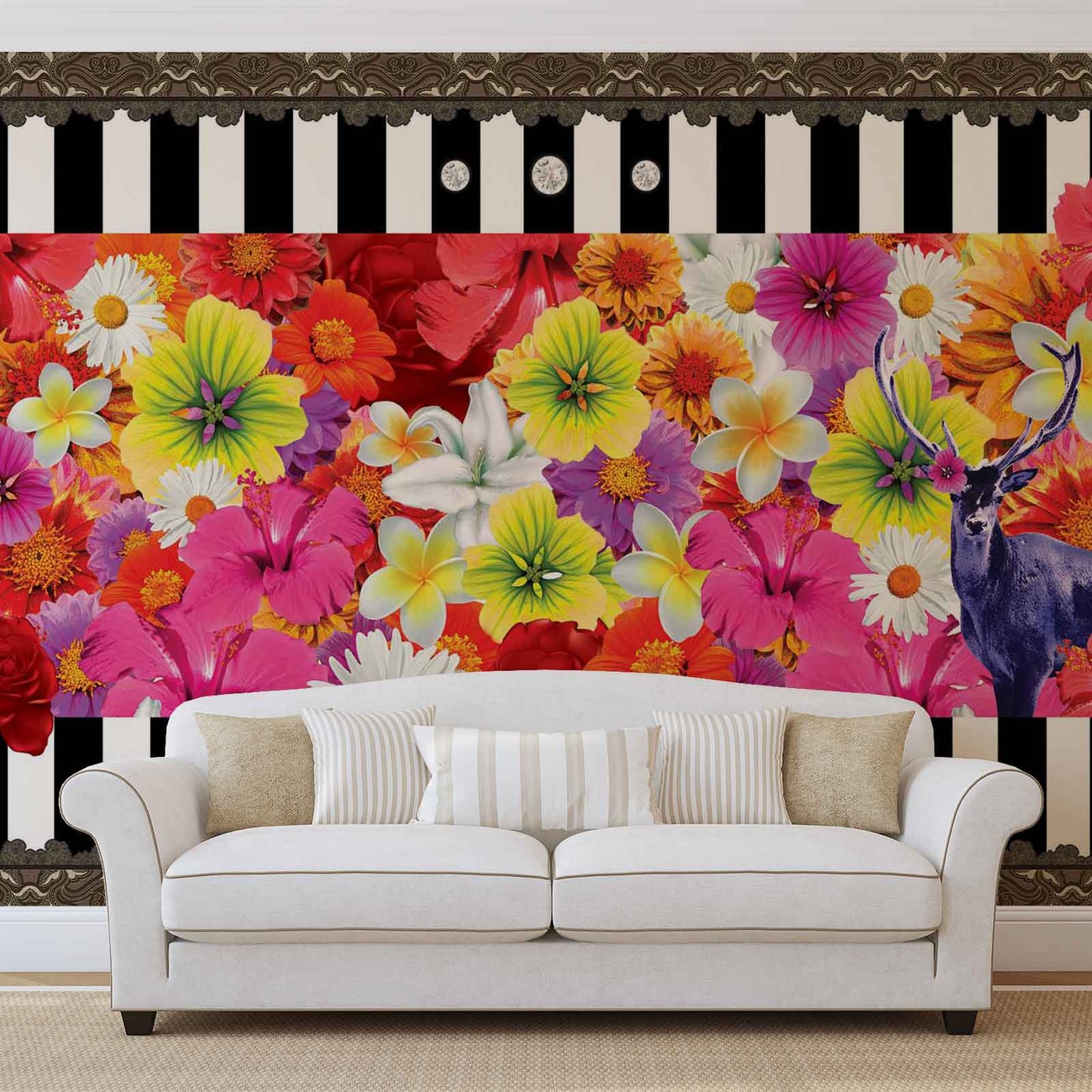 Floral Stripes Wallpaper Mural
