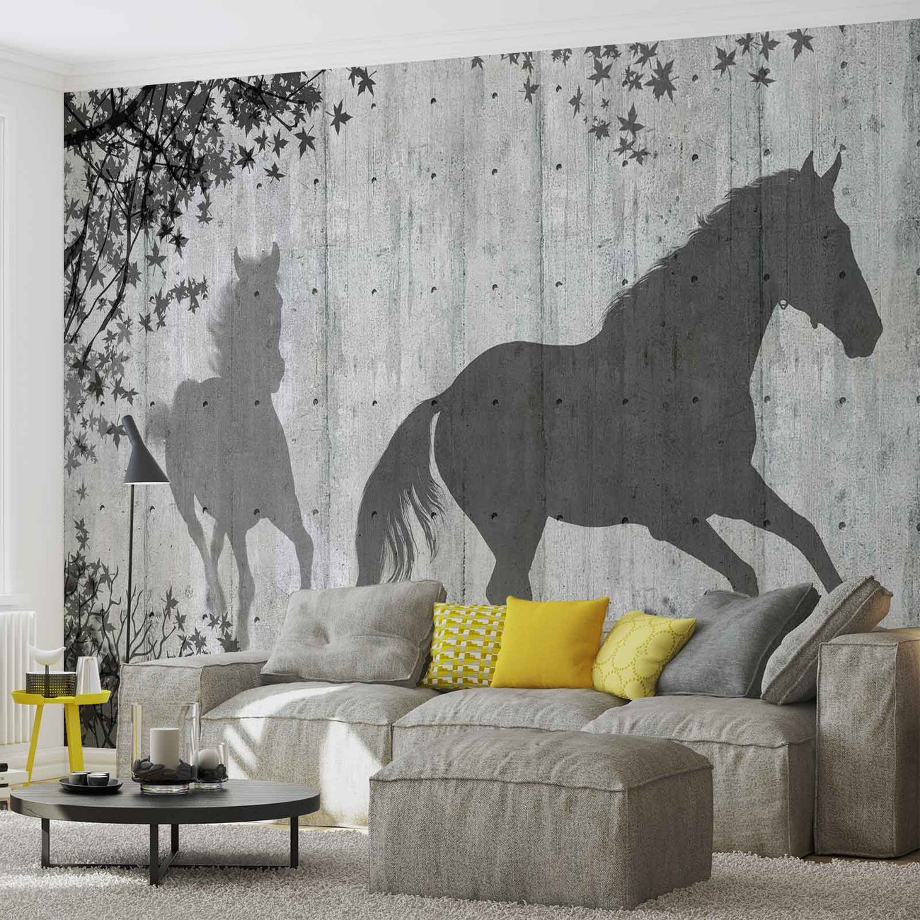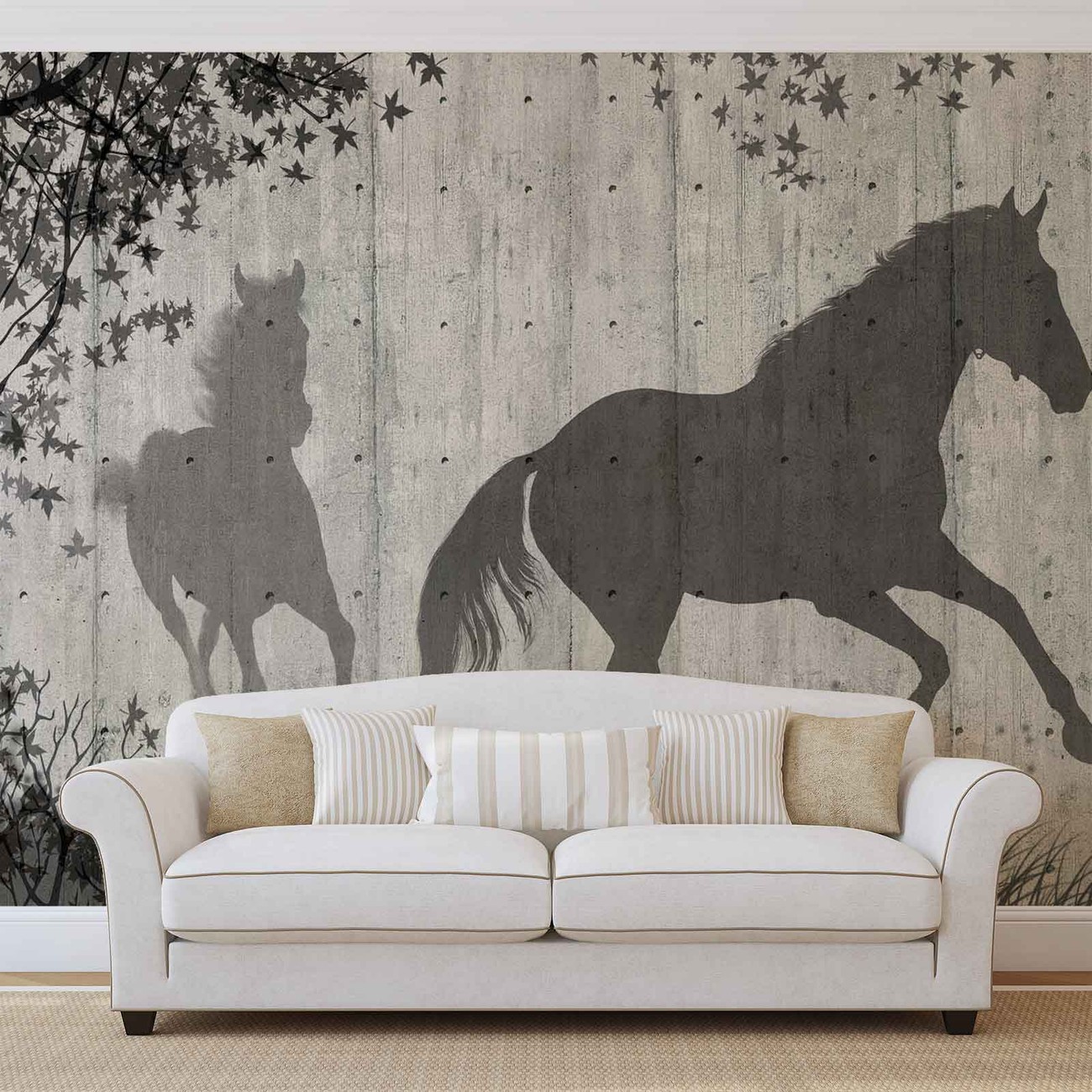 Horses Tree Leaves Wall Wallpaper Mural