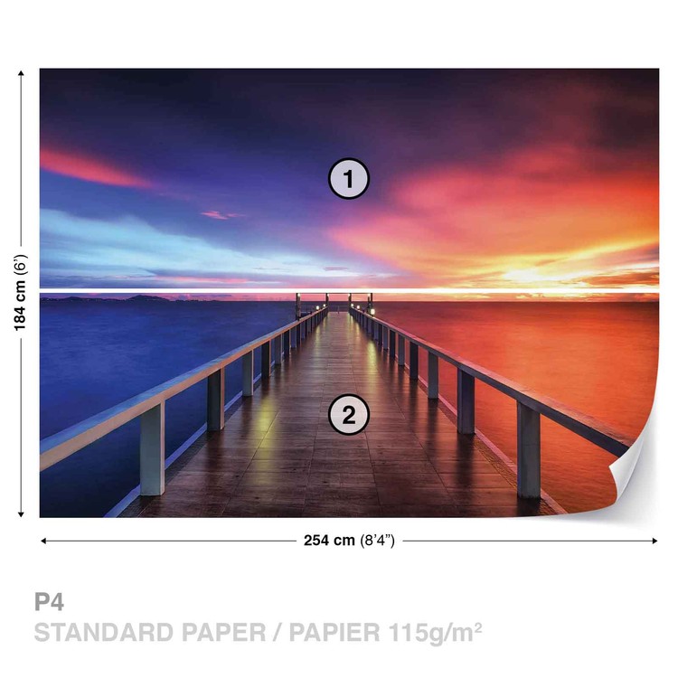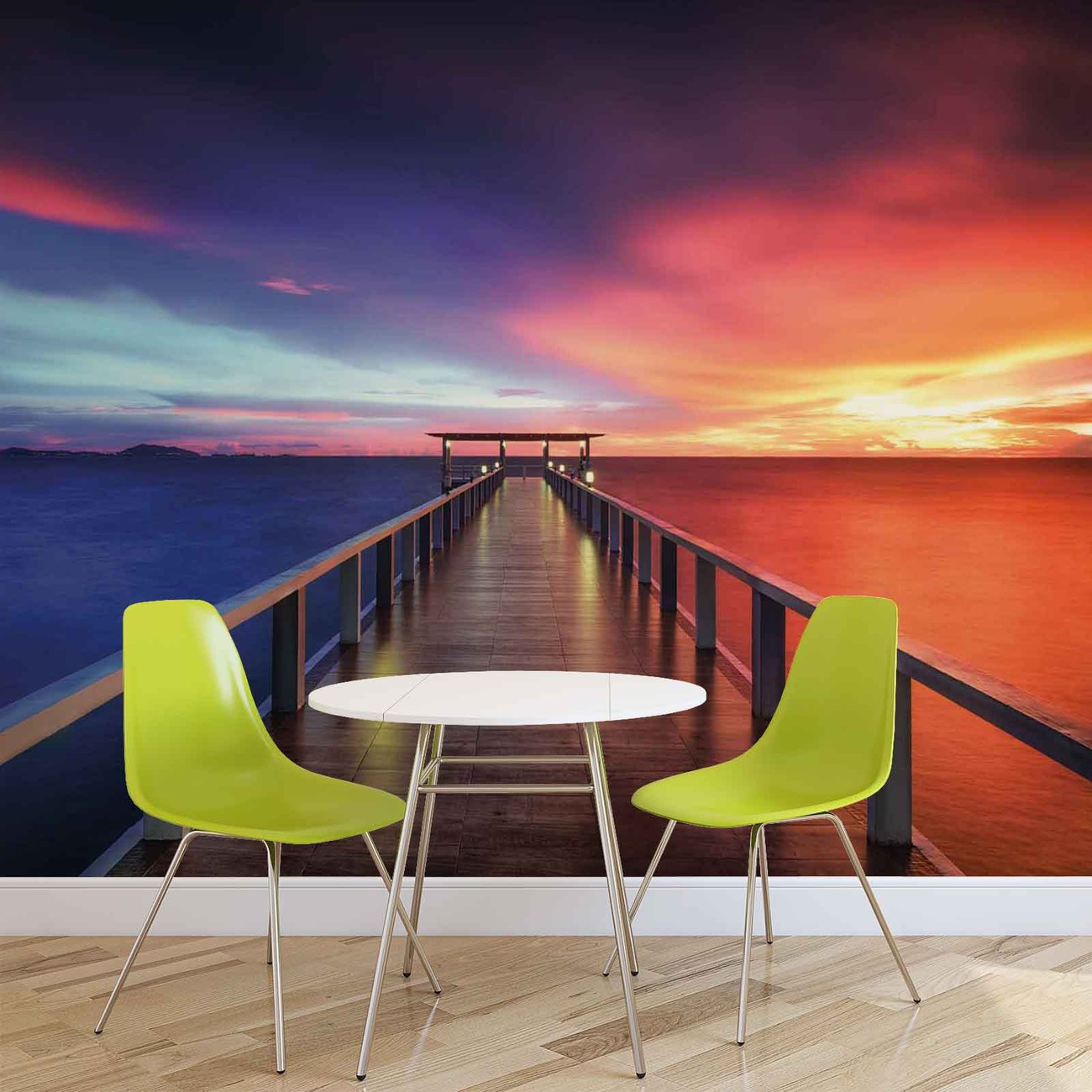 Path Bridge Sun Sunset Multicolour Wallpaper Mural