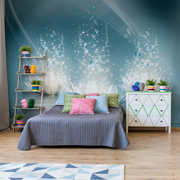Spa Flowers Sparkles Blue Wallpaper Mural