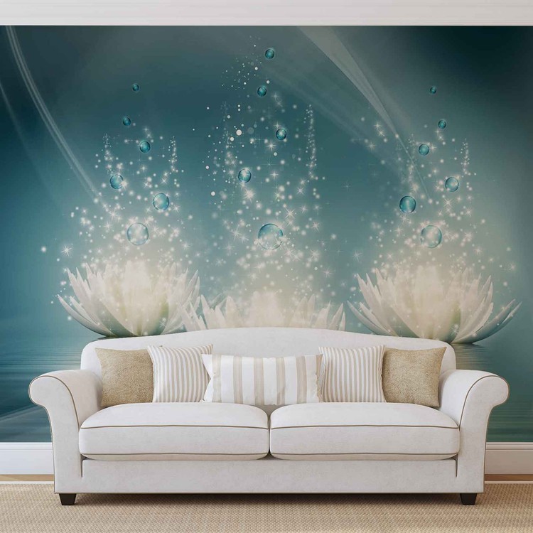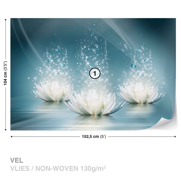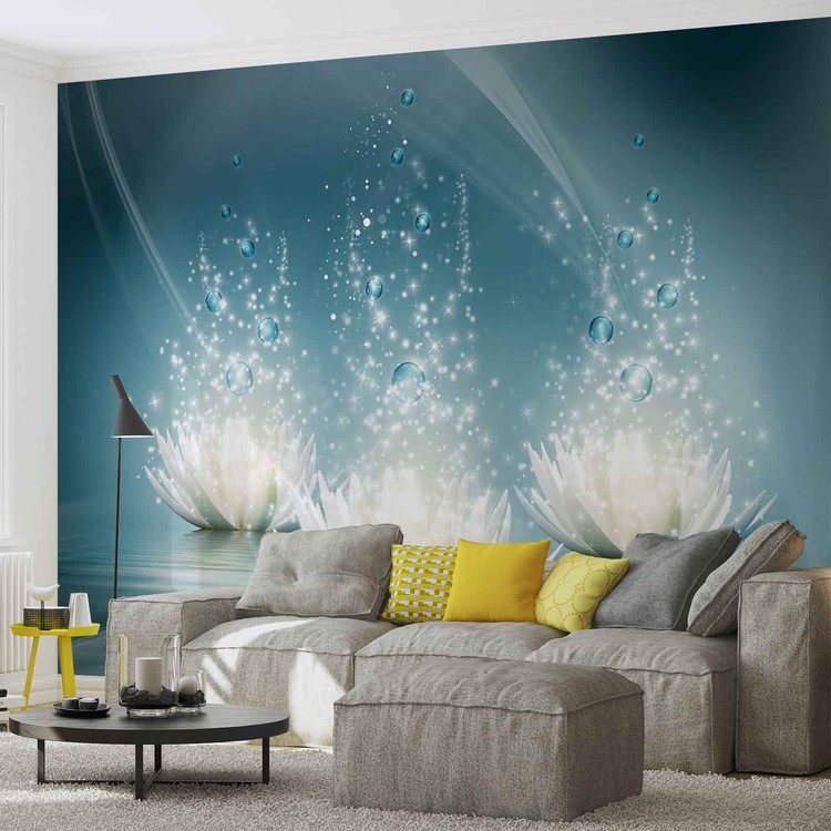 White Lotus Flowers Drops Wallpaper Mural